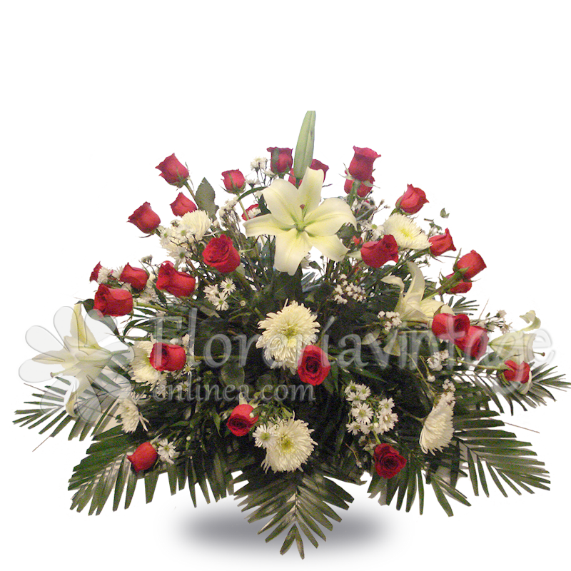 Tapete luctuoso con 36 rosas, concador y flor de complemento